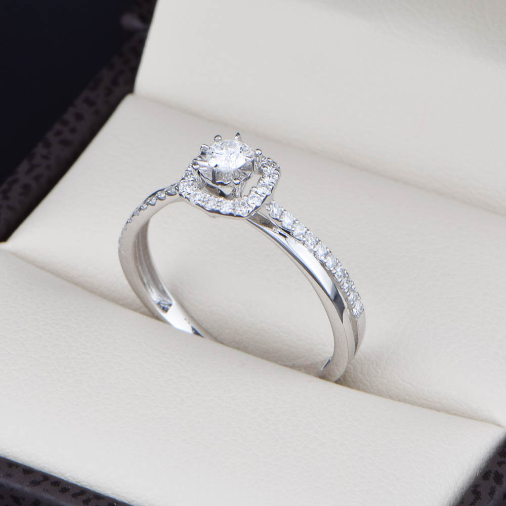Anillo de compromiso Oro 14k Corte Brillante y Halo con Diamantes