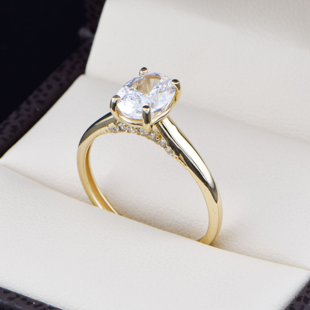 Anillo de compromiso Oro 14k con zirconia Ovalada