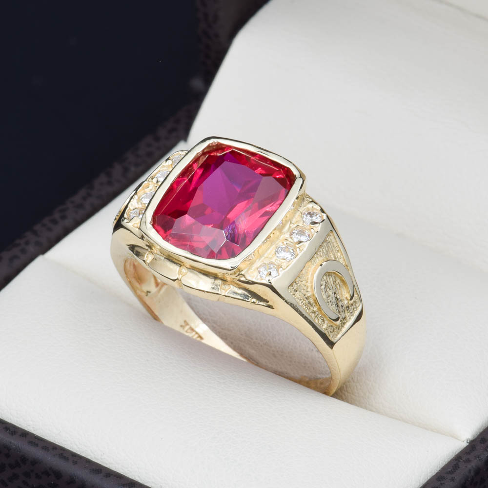 Anillo de Oro 14k con Zirconia Roja para caballero