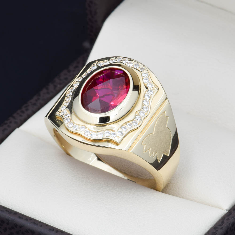 Anillo de Oro 14k con Zirconia Roja para caballero