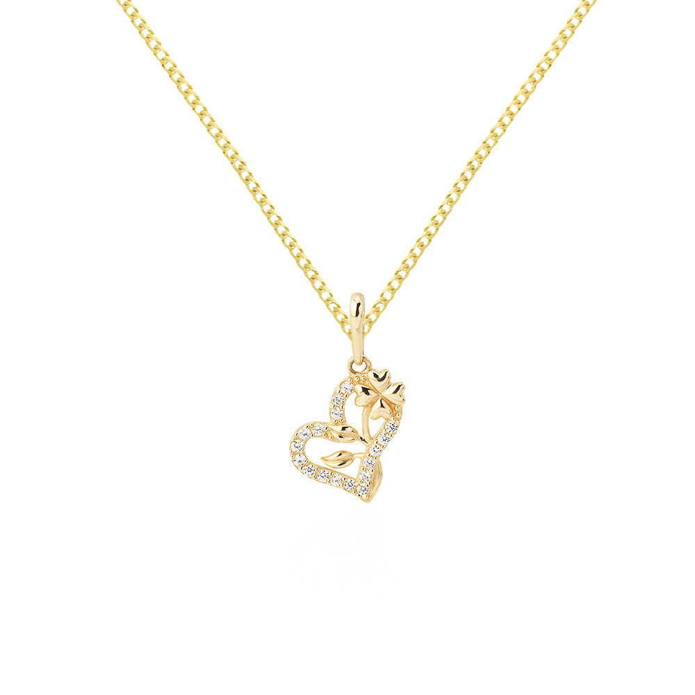 Cadena con dije de corazón de oro 14k con zirconias