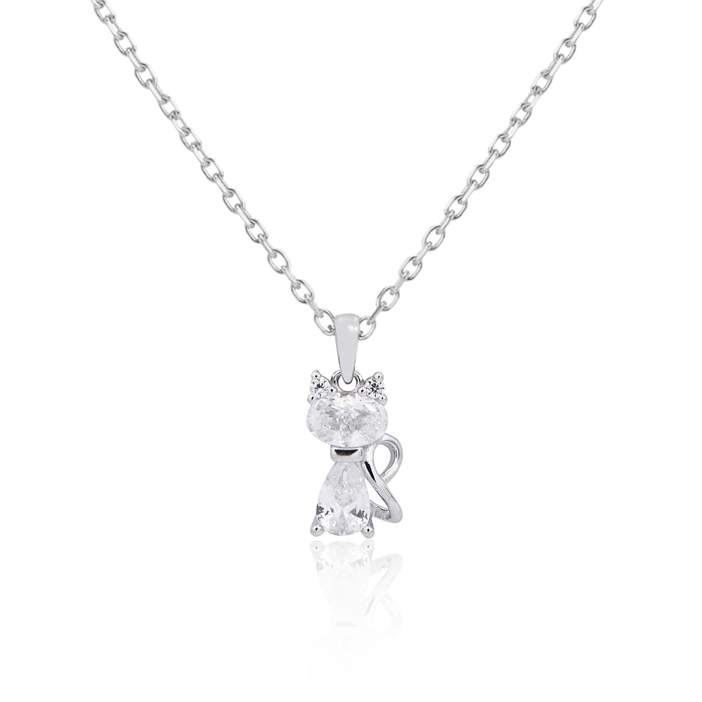 Cadena con dije de Gato de Plata 925 y zirconias
