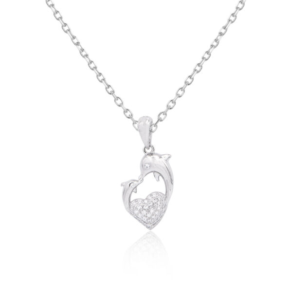 Cadena con dije de Corazon y Delfines de Plata 925 y zirconias