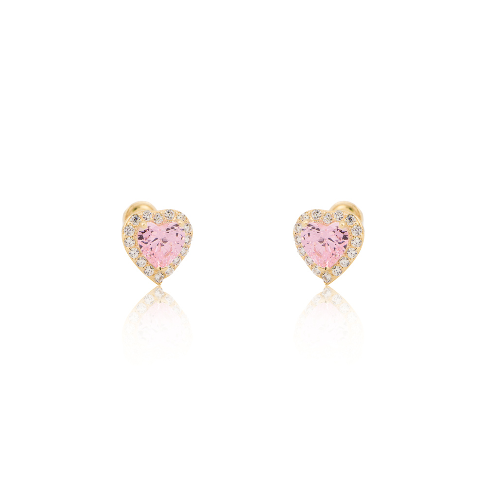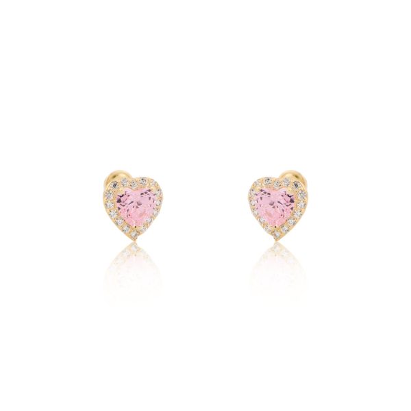 Dormilona de corazón en oro 14k con zirconias rosa con rosca para bebe