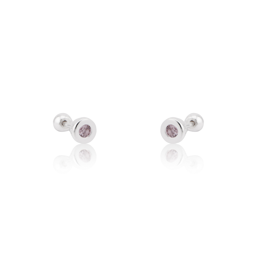 Dormilona en plata 925 con zirconia con rosca para bebe