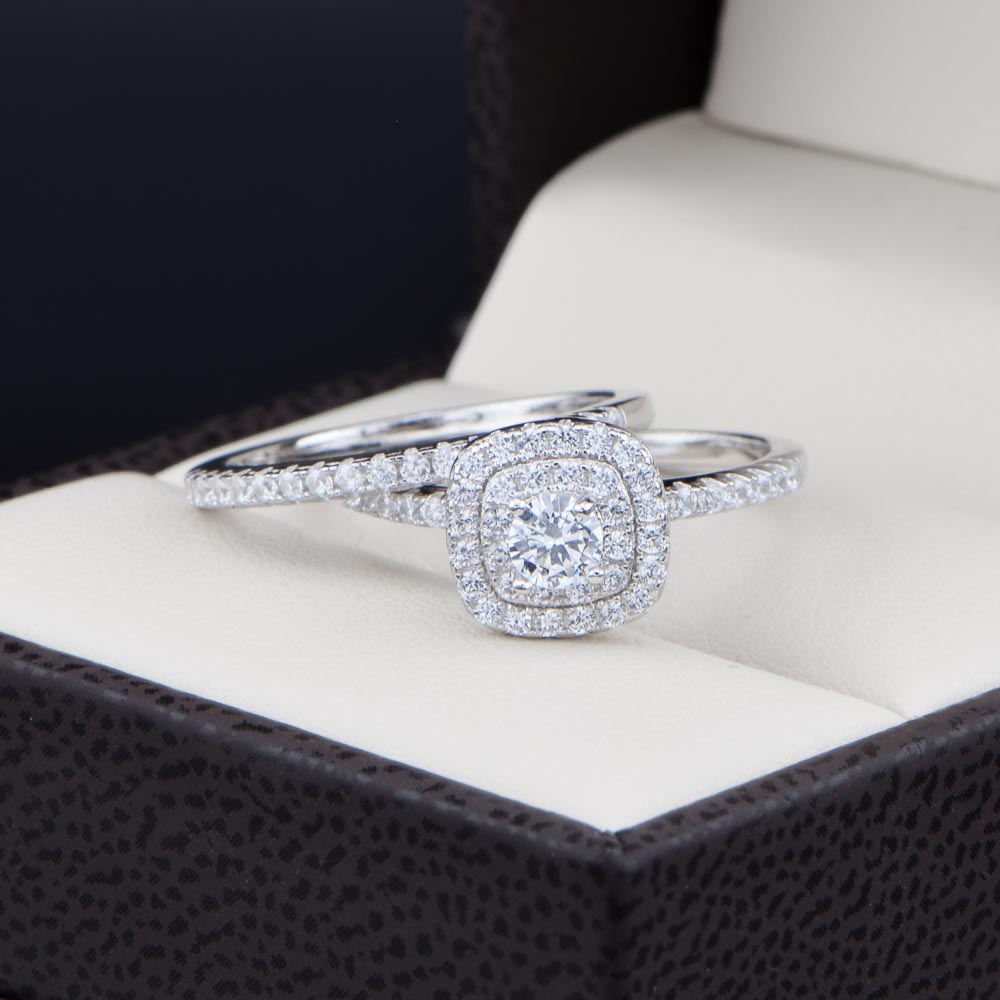 Duo de boda en Plata 925 Zirconia Redonda y Halo